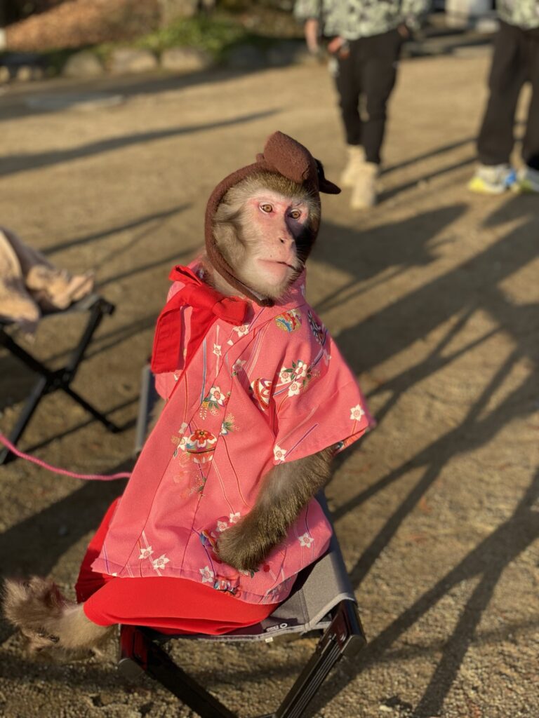 浅間大社にお参りに行ったら、お猿さんがいました(*´`)