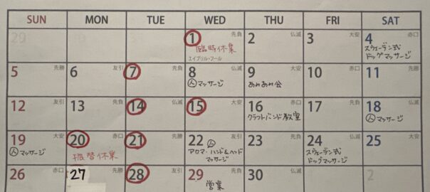@4/29(水) 営業 ⇒振替休業4/20(月)